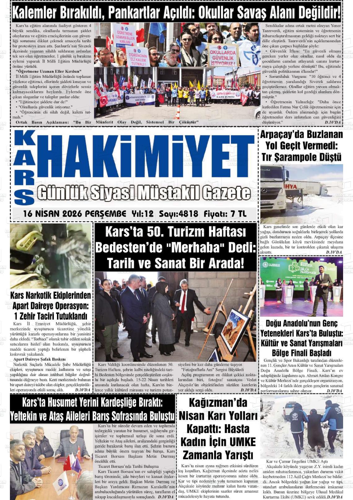 Kars Yerel Gazeteleri 10 April 2026, Friday Günü Manşeti